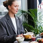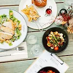克拉丽奥边缘酒店在餐厅提供早餐. Kitchen Table是一家零点饭店,每天为客人供应晚餐.